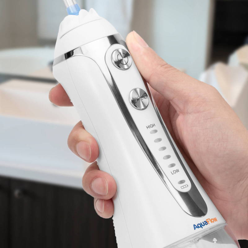 easier & more effective way to floss with the AquaFlow Water Flosser.